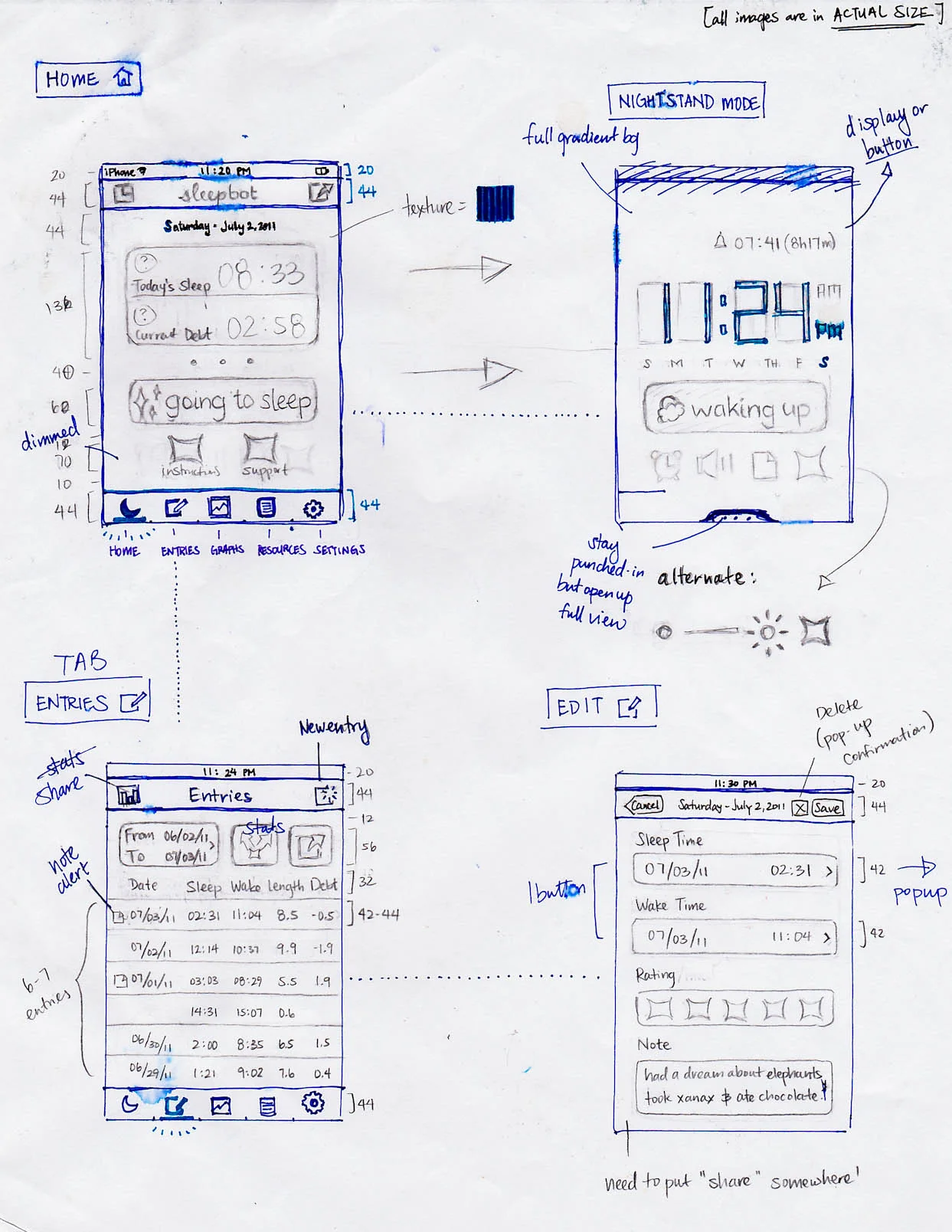 Since we launched SleepBot for Android as a humble sleep journal nearly three years ago, we’ve been working step by step towards introducing SleepBot on the iOS platform, and what a crazy, difficult, and awesome journey it’s been. When we initially started designing SleepBot 1.0 for iOS, it offered the same simple features as it did in the Android version 1.0. A single-button “punch-in” function to time your sleep. A “current debt” tracker that would help you find out how much sleep you were missing. And trend graphs to get a sense of all your data. Over the years, things have gotten a bit more complicated…